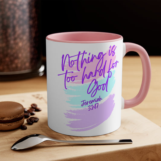 Jeremiah 32:17 Nothing is Too Hard for God Accent Mug